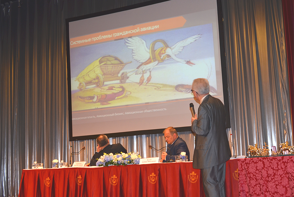Из выступления Р.Р.Сулейманова на «Пражских деловых встречах»: Мы столкнулись с ситуацией, которая не преодолена до конца и по сию пору: авиационная власть, авиационный бизнес и авиационная общественность напоминают ту самую, знаменитую басню И.А.Крылова о Лебеде, Раке и Щуке…
